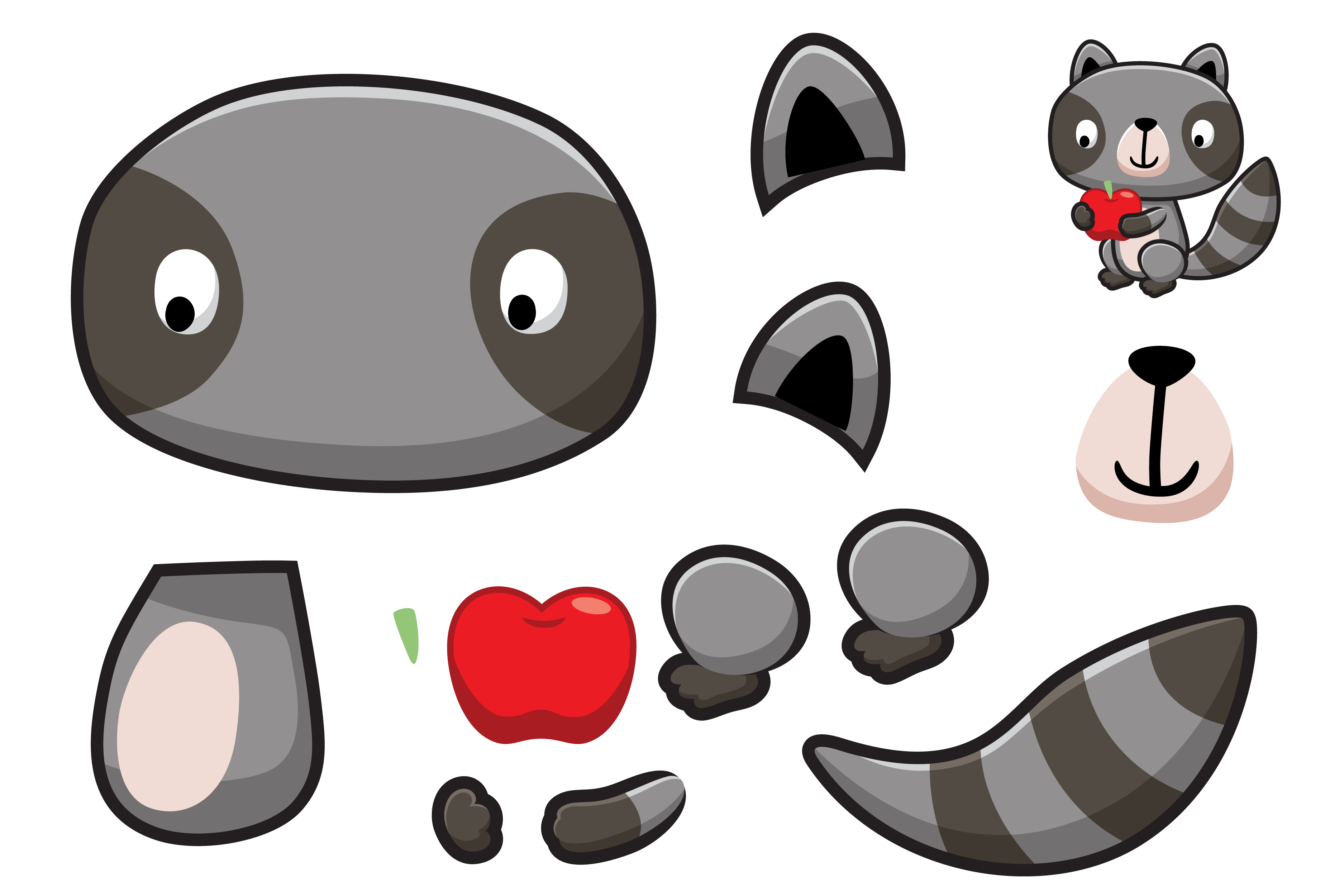 Аппликация: Енот с яблоком