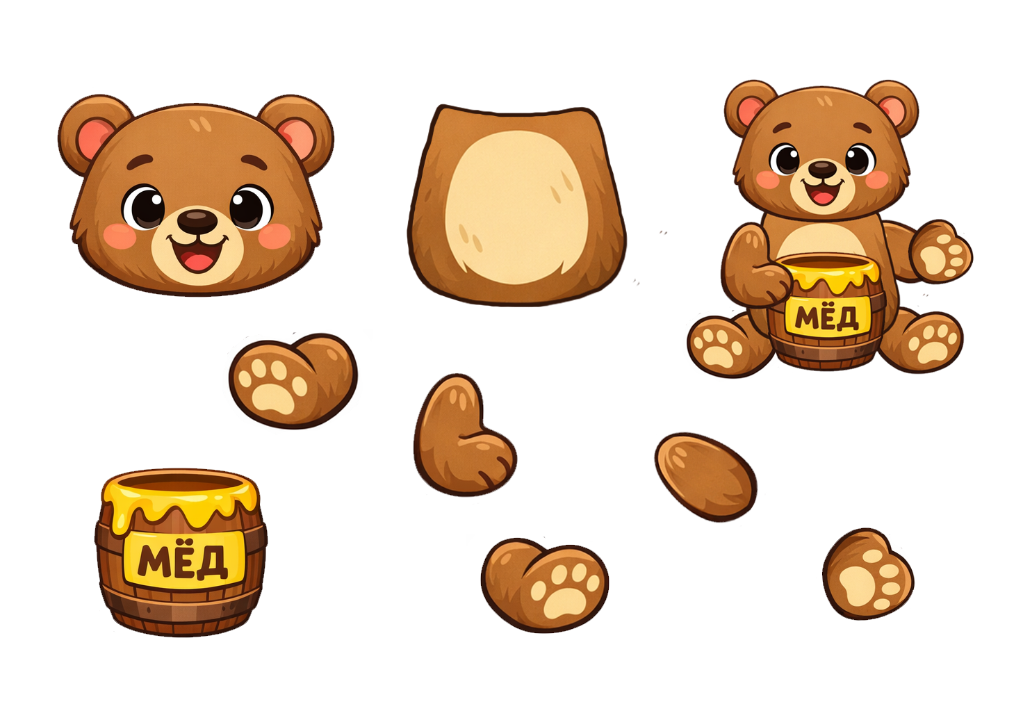 Шаблон аппликации: Медведь с мёдом