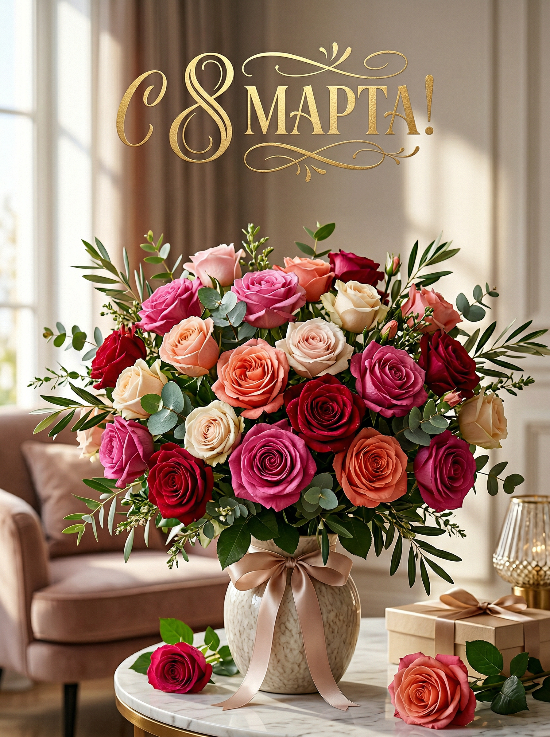 Открытка «С 8 марта: Букет роз»