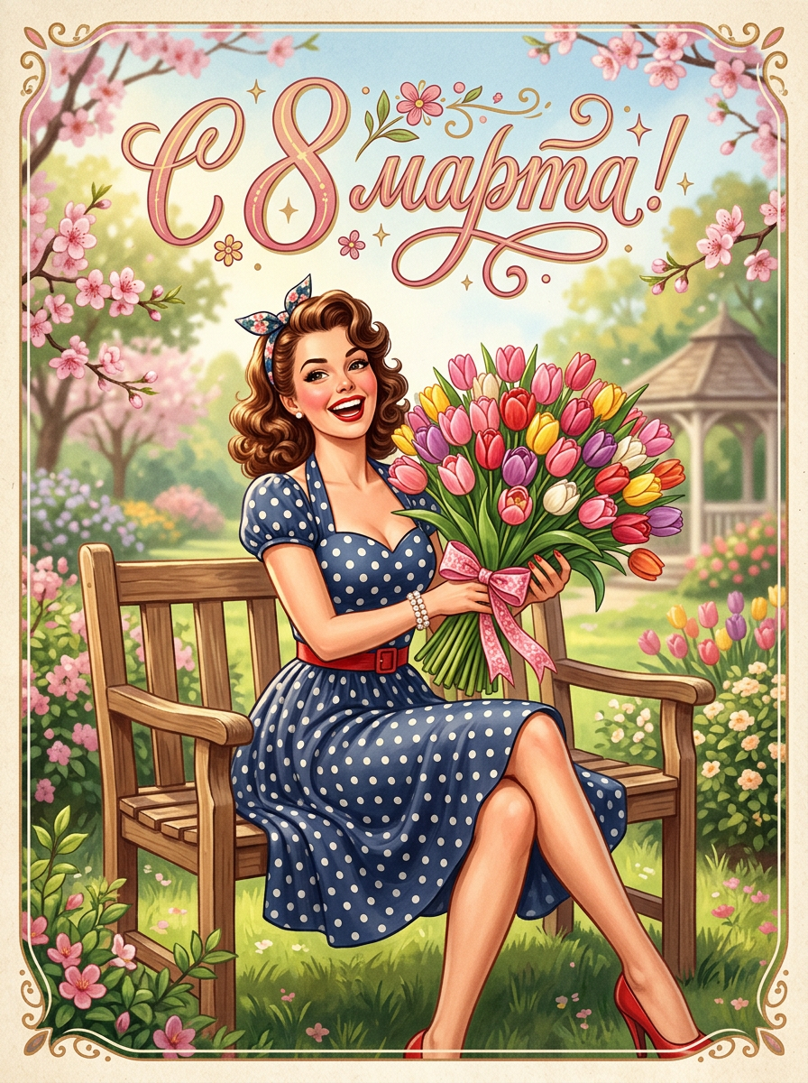 Открытка «С 8 марта: Красивая девушка» — воплощение весны и женственности. На рисунке — девушка в лёгком платье, среди цветущих веток, с нежной улыбкой на лице. В фоне — деликатные узоры, весенние мотивы и изящные детали. Цветовая гамма сочетает пастельные и яркие тона, что придаёт открытке особую атмосферу праздника и радости. Идеальный выбор для поздравления любимых женщин с Международным женским днём.