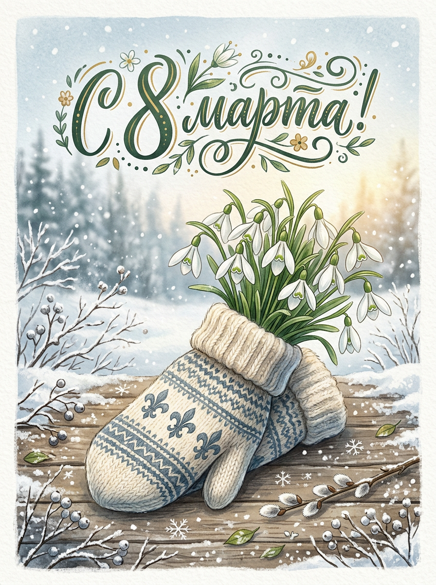 Открытка «С 8 марта: Первоцветы» — нежные вестники весны, которые приносят в мир красоту и надежду. Пусть твой день будет таким же светлым и радостным, как их пробуждение после зимы. Желаю тебе счастья, любви и гармонии в жизни. Ты заслуживаешь всего самого лучшего!