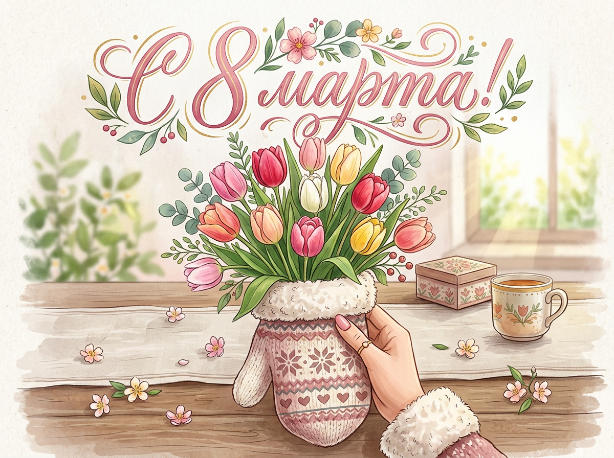 «С праздником весны! Ты — как пробуждение природы: красивая, удивительная и немного непредсказуемая. Пусть твоя весна будет полна чудес, а ты — окружена заботой и вниманием!»