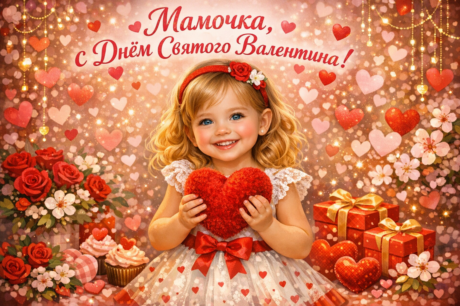 «С Днём Святого Валентина, мамочка! Ты — моё счастье и радость. Спасибо за твою любовь и заботу!»