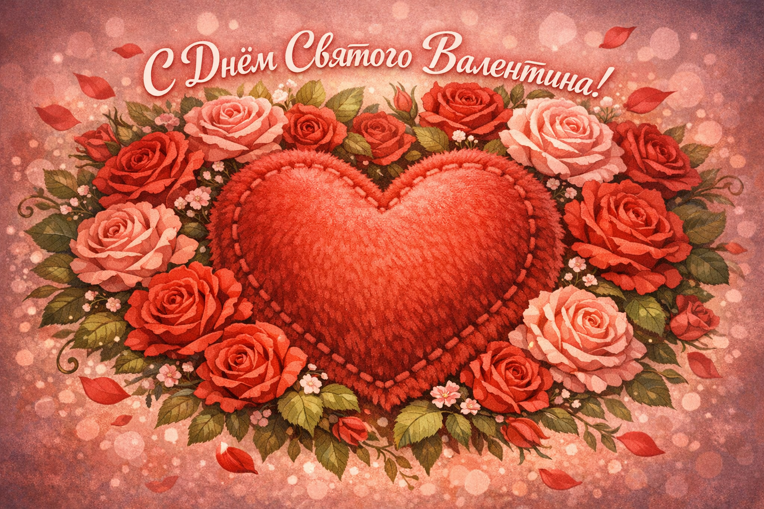 Открытка «С Днем Святого Валентина: Пушистое сердце» — нежный символ вашей любви! Порадуйте возлюбленного(ую) милым посланием в этот праздничный день!