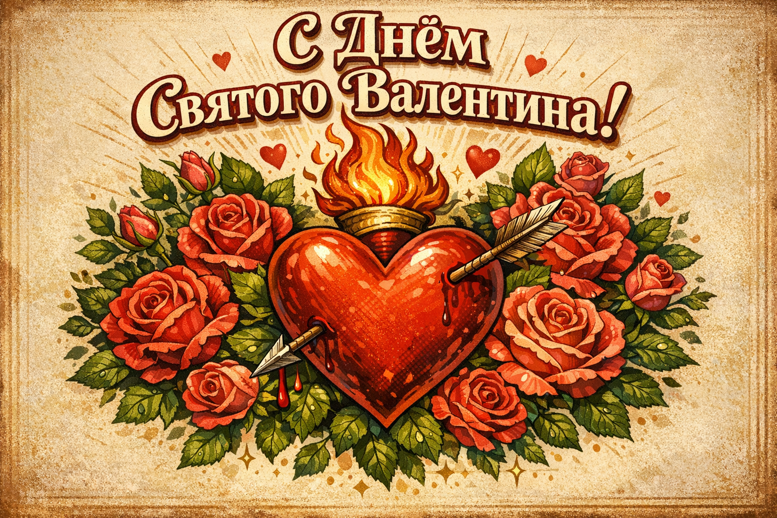 Открытка «С Днем Святого Валентина: Раненное сердце» — трогательный способ выразить любовь и нежность. Символ раненого сердца напомнит возлюбленной о глубине ваших чувств!