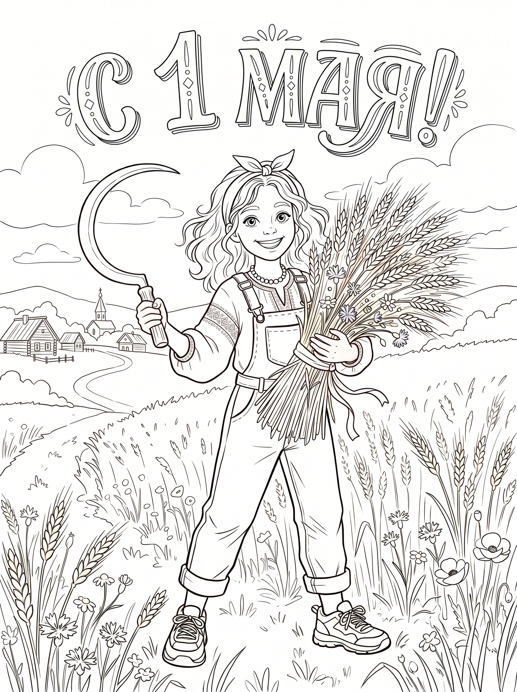 Раскраска «С 1 мая: Девушка со снопом пшеницы» — это творческий проект ко Дню труда, сочетающий развлечение и познание. Помогает не только проявить художественные навыки, но и прочувствовать ценность ручного труда, связь человека с землёй.