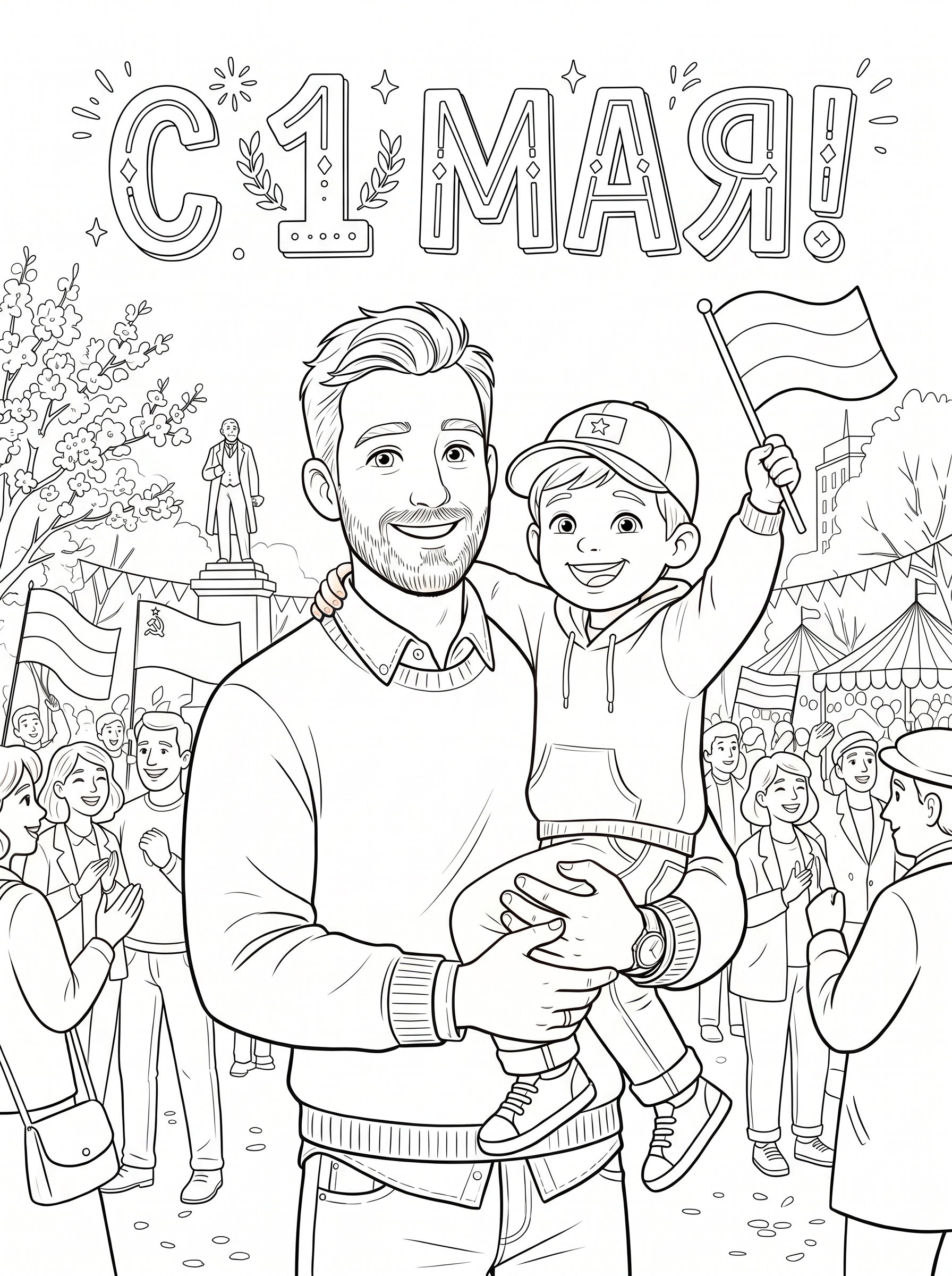 Раскраска «С 1 мая: Первомайская демонстрация» — это познавательное и увлекательное занятие ко Дню труда, которое сочетает творчество с погружением в традиции праздника.