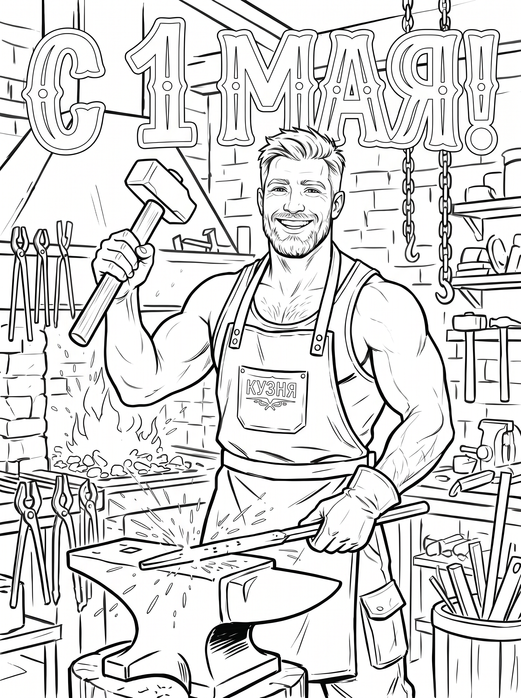 Раскраска «С 1 мая: Весёлый молотобоец»