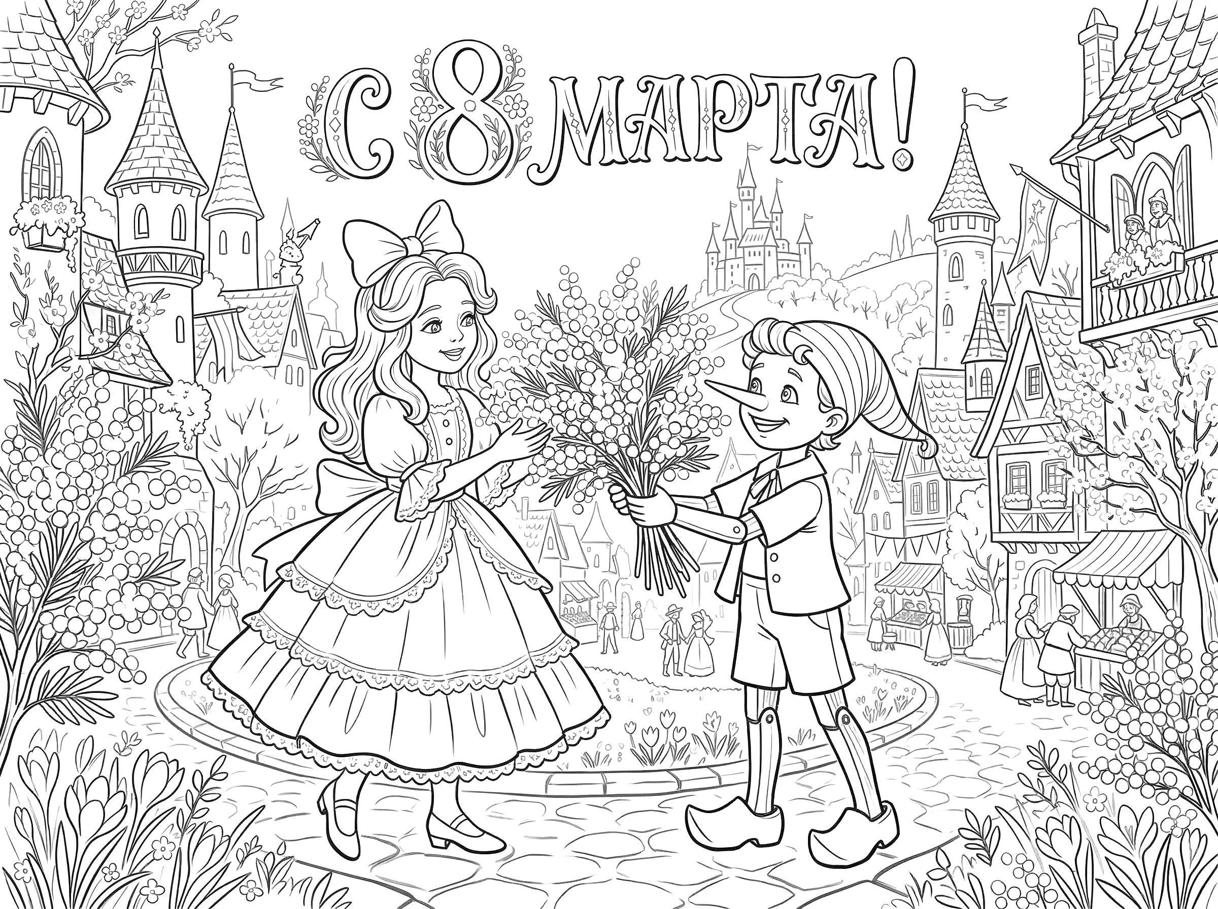 Раскраска «С 8 марта: Девочка с голубыми волосами»