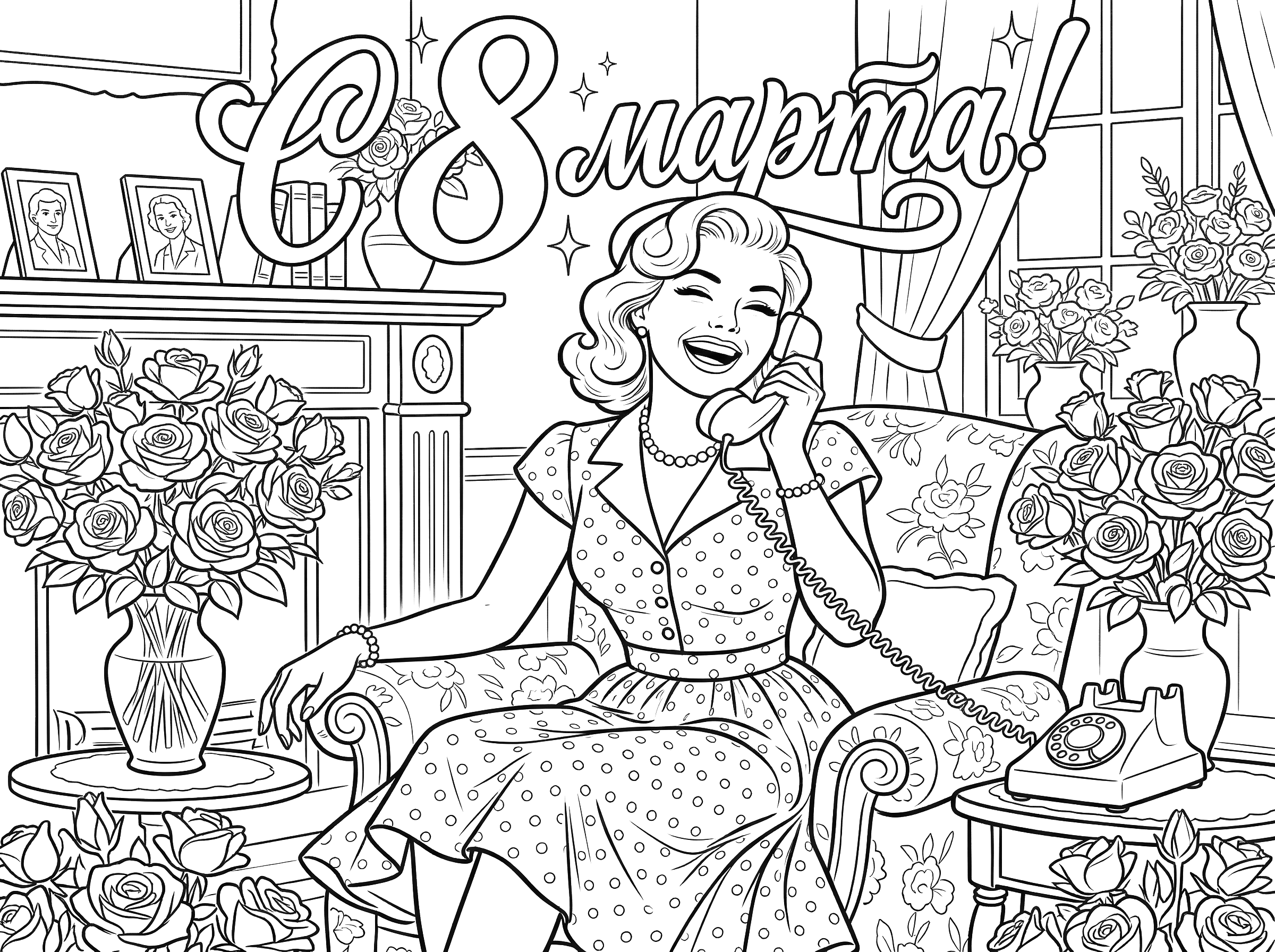 Раскраска «С 8 Марта: Милая барышня» погрузит вас в атмосферу праздника ! Это отличный выбор для всех, кто любит раскрашивать и хочет создать что-то особенное.