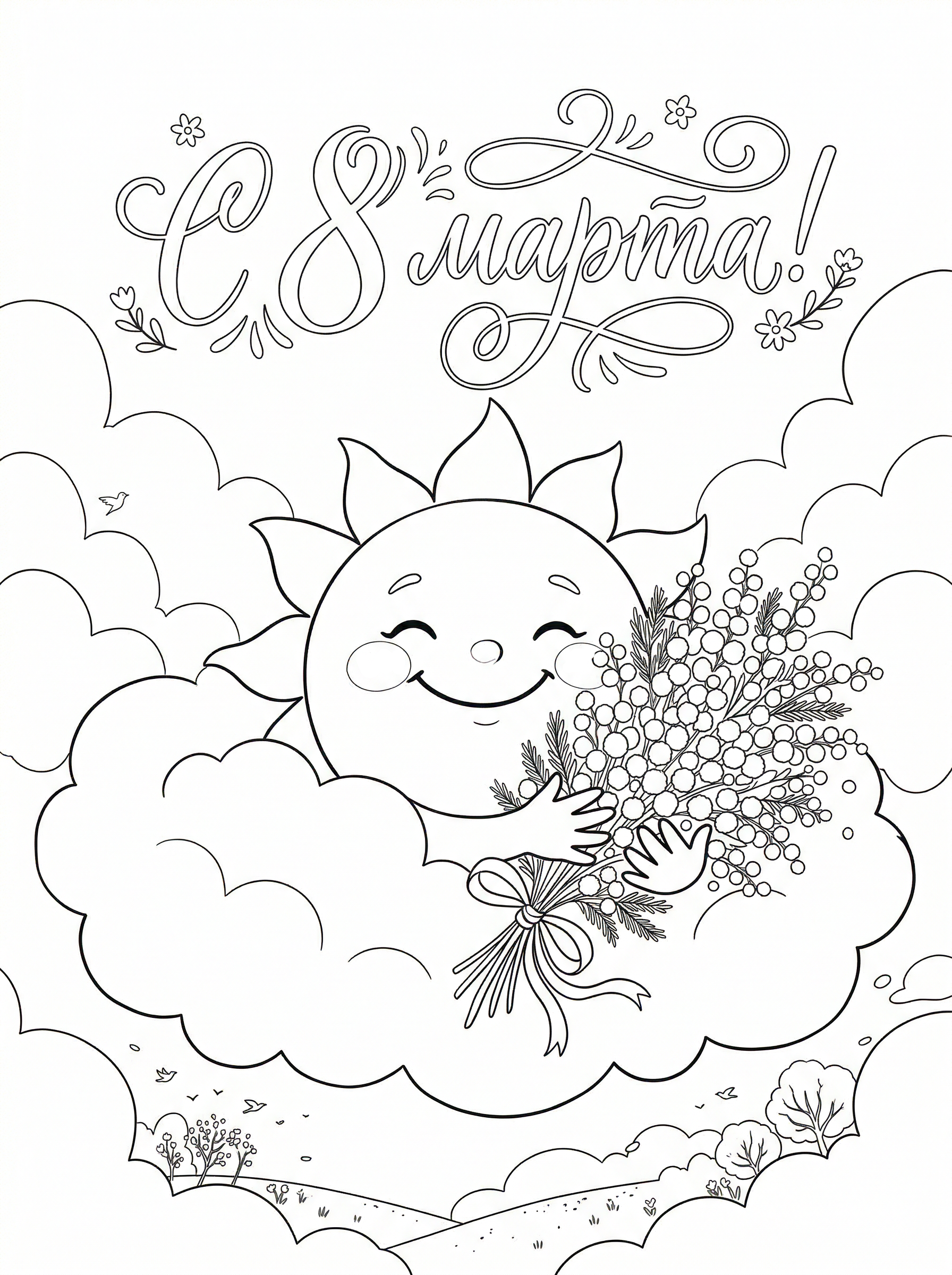Раскраска «С 8 Марта: Солнышку от Солнышка» — чудесный способ подготовить особенный подарок! С её помощью вы сможете создать яркую и душевную открытку, которая порадует близкого человека.