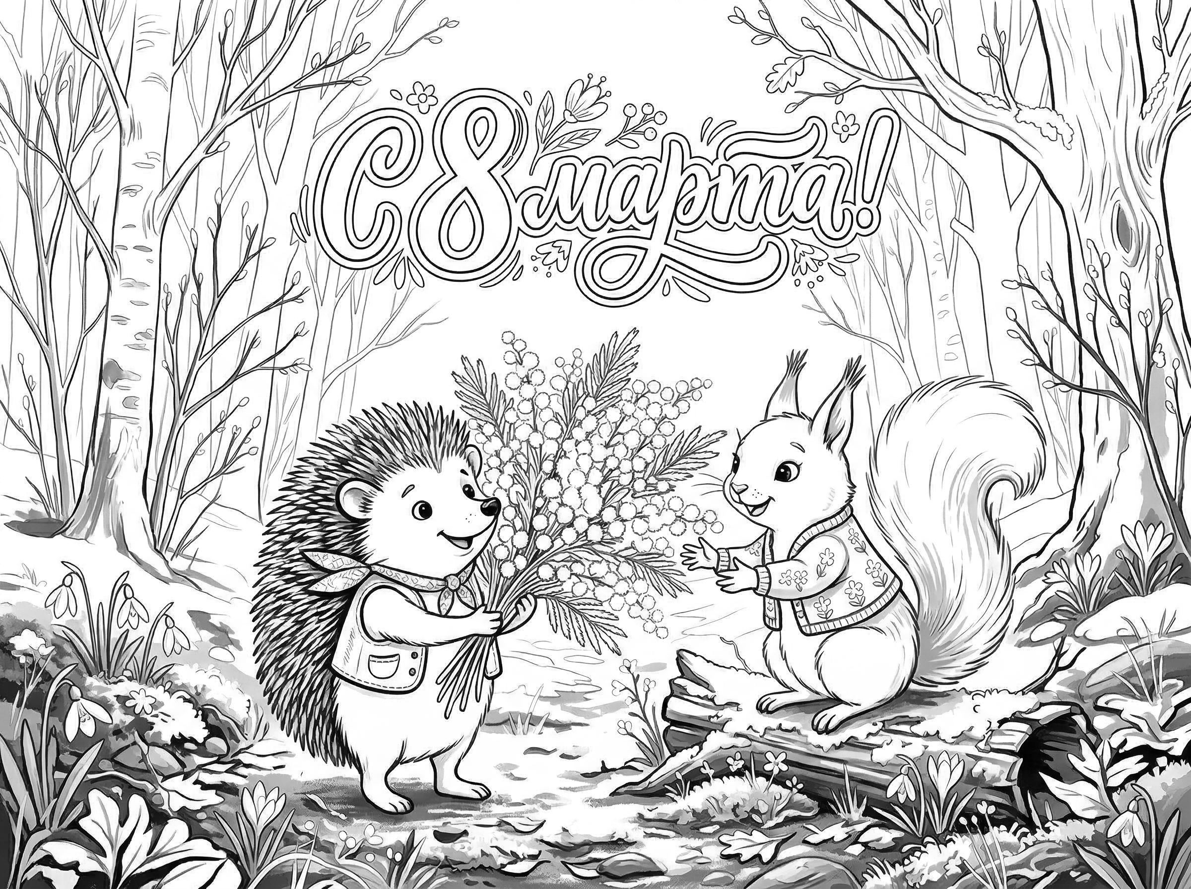 Раскраска «С 8 марта: Весёлые зверушки»