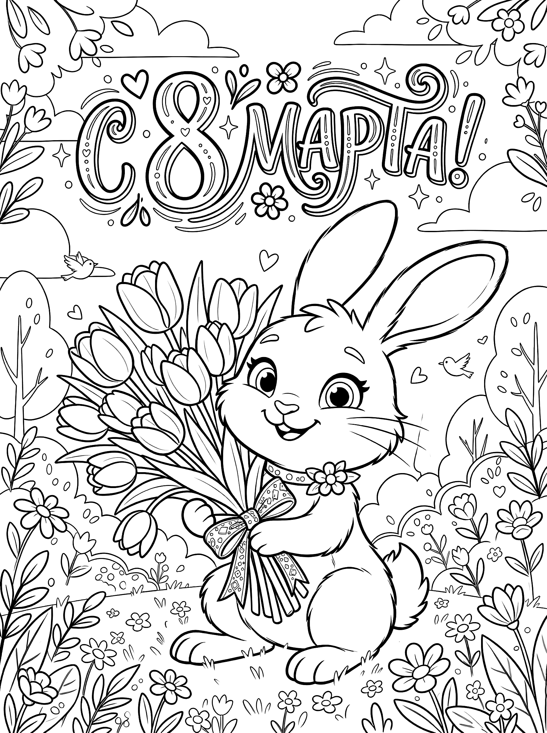 Раскраска «С 8 марта: Зайка»