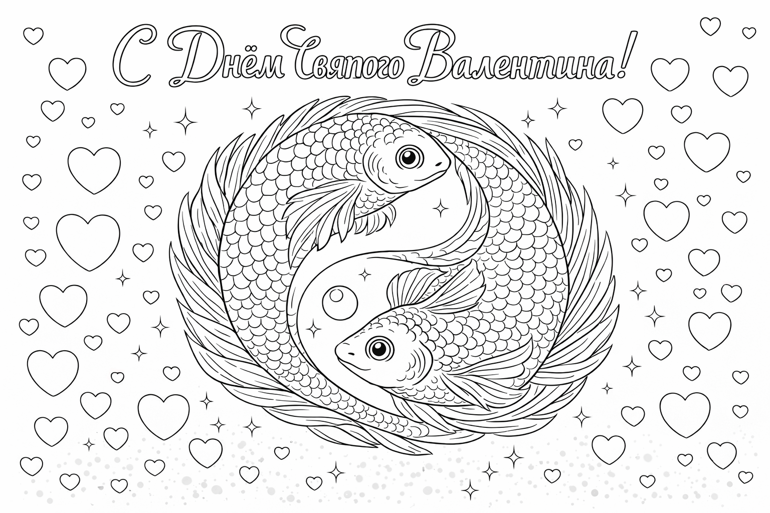 Раскраска «С Днем Святого Валентина: Рыбки инь-ян»