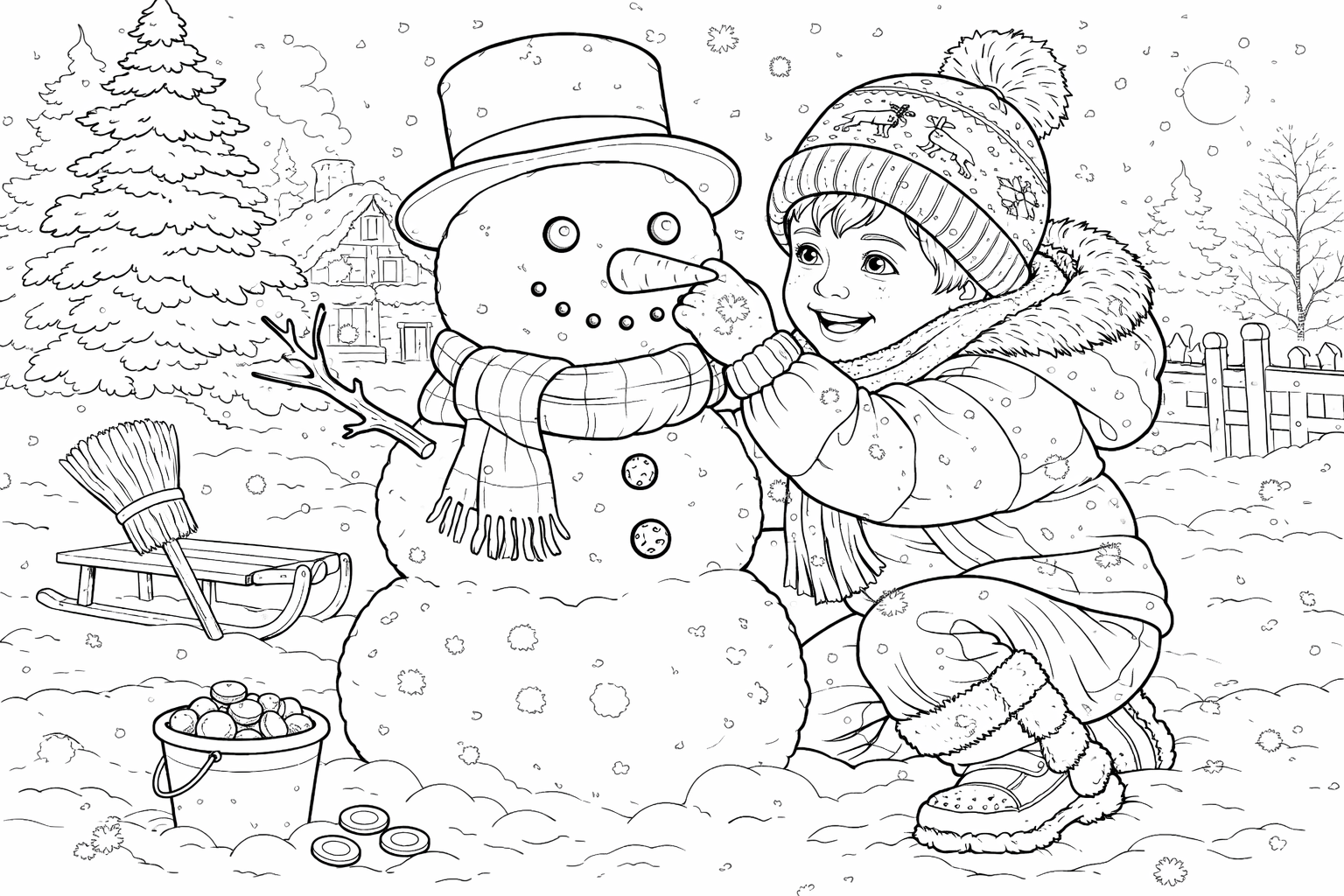 С раскраской «Зимние забавы: Снеговик» ваш ребёнок сможет создать собственный волшебный зимний мир! Простые контуры и интересные сюжеты увлекут малыша и поспособствуют развитию его фантазии и аккуратности.